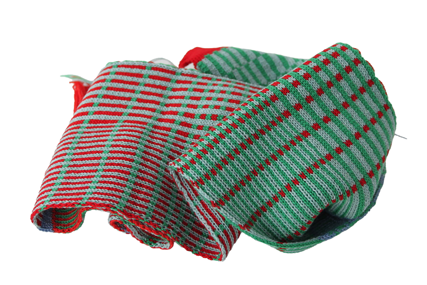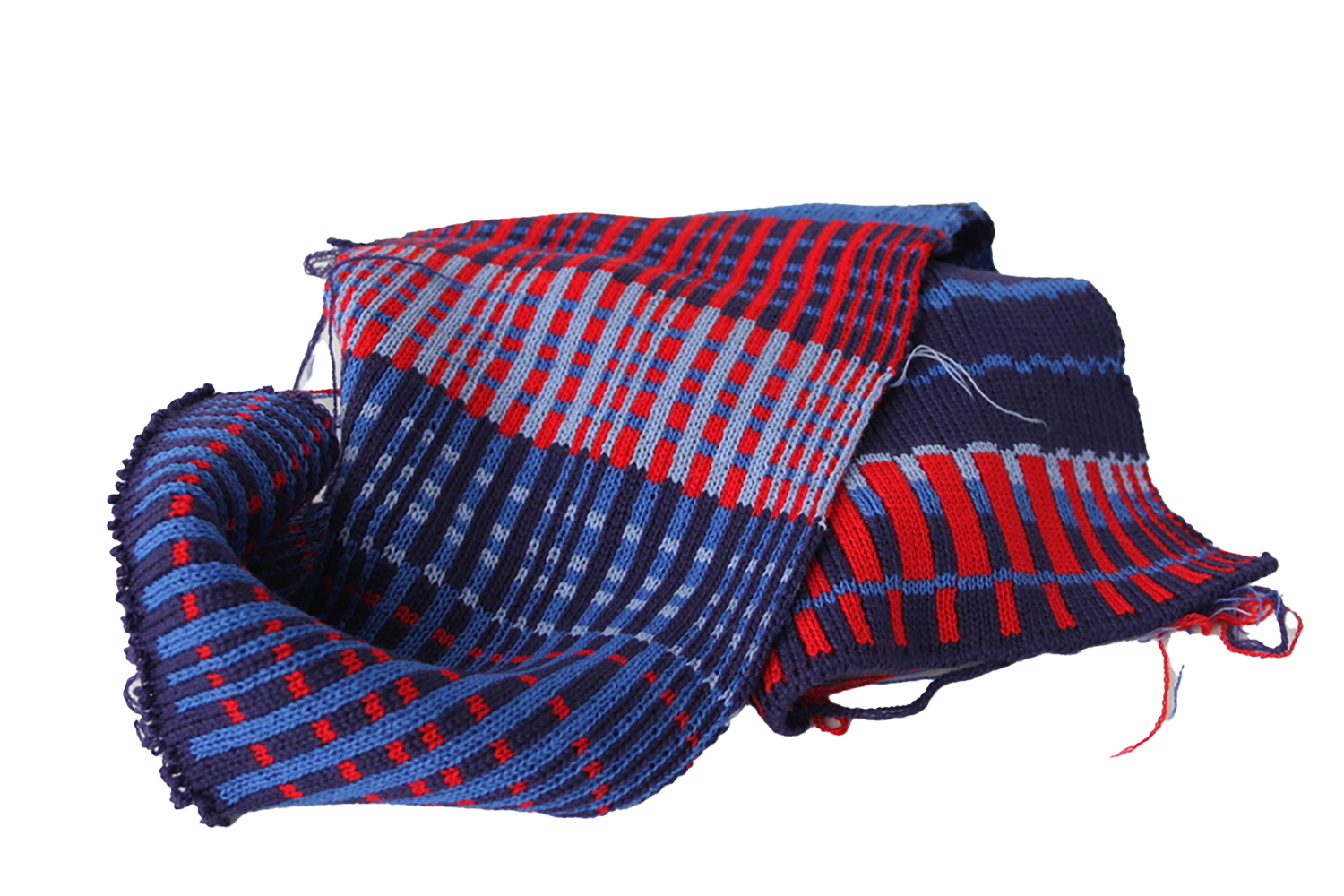 knitting samples made in an introductory class to knitting on a passap duomatic 80